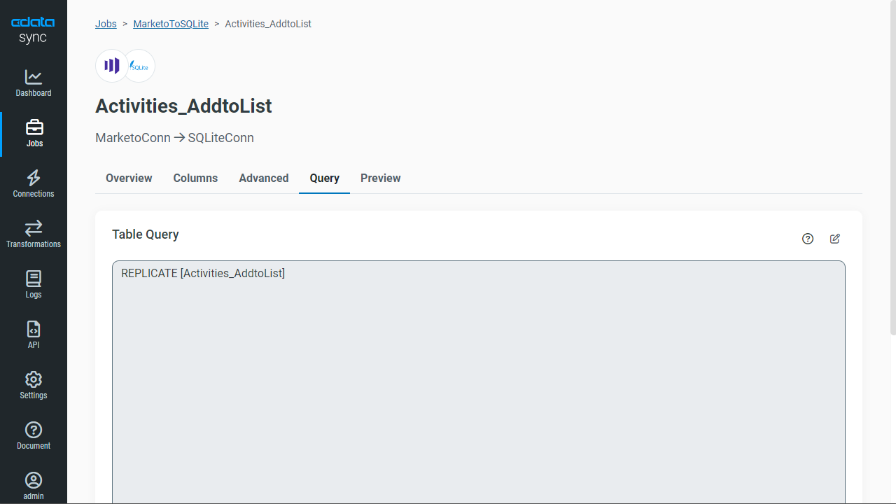 Marketo とデータベースの同期は、2つのリレーショナルデータベース間のデータ移行や ETL と同様の手順で行えます。CData Sync for Marketo は Marketo のエンティティをリレーショナルテーブルとしてモデル化するため、データベースへのマッピング設定が簡単です。REPLICATE キーワードを使った標準の SELECT ステートメントでレプリケーションタスクを定義できます。