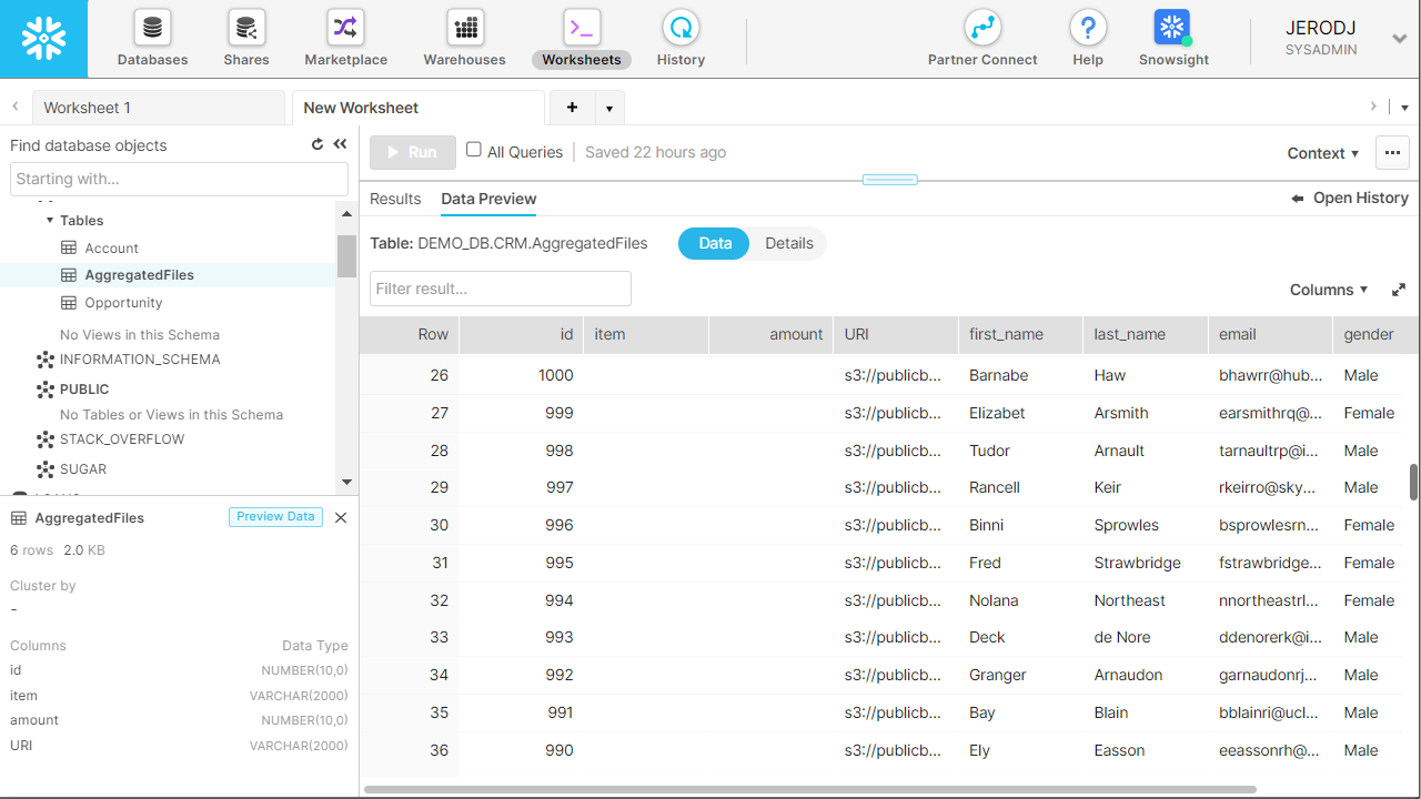 - 次に、Snowflake インスタンスを確認して、CSV ファイルのデータが正しくレプリケーションされたことを確認します。
