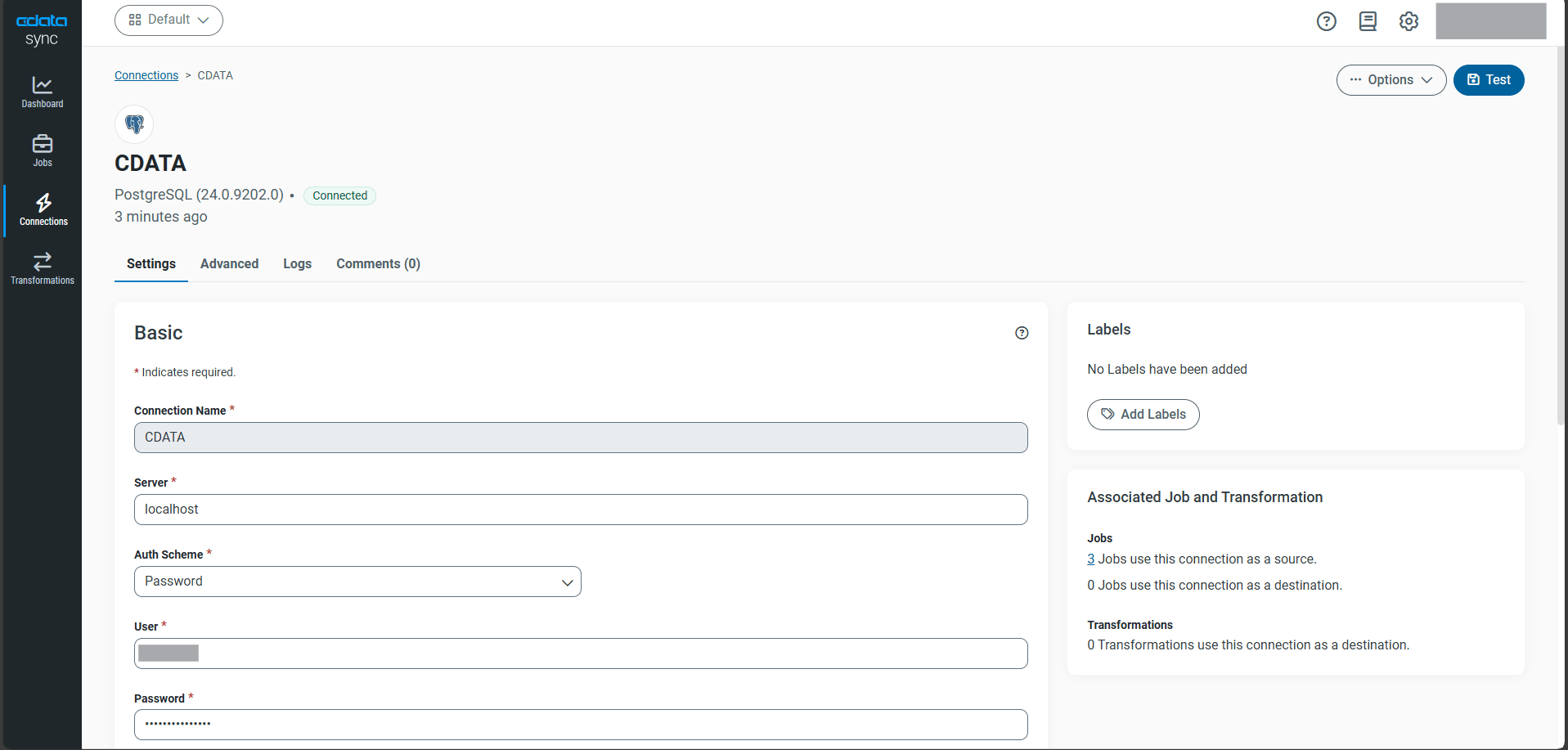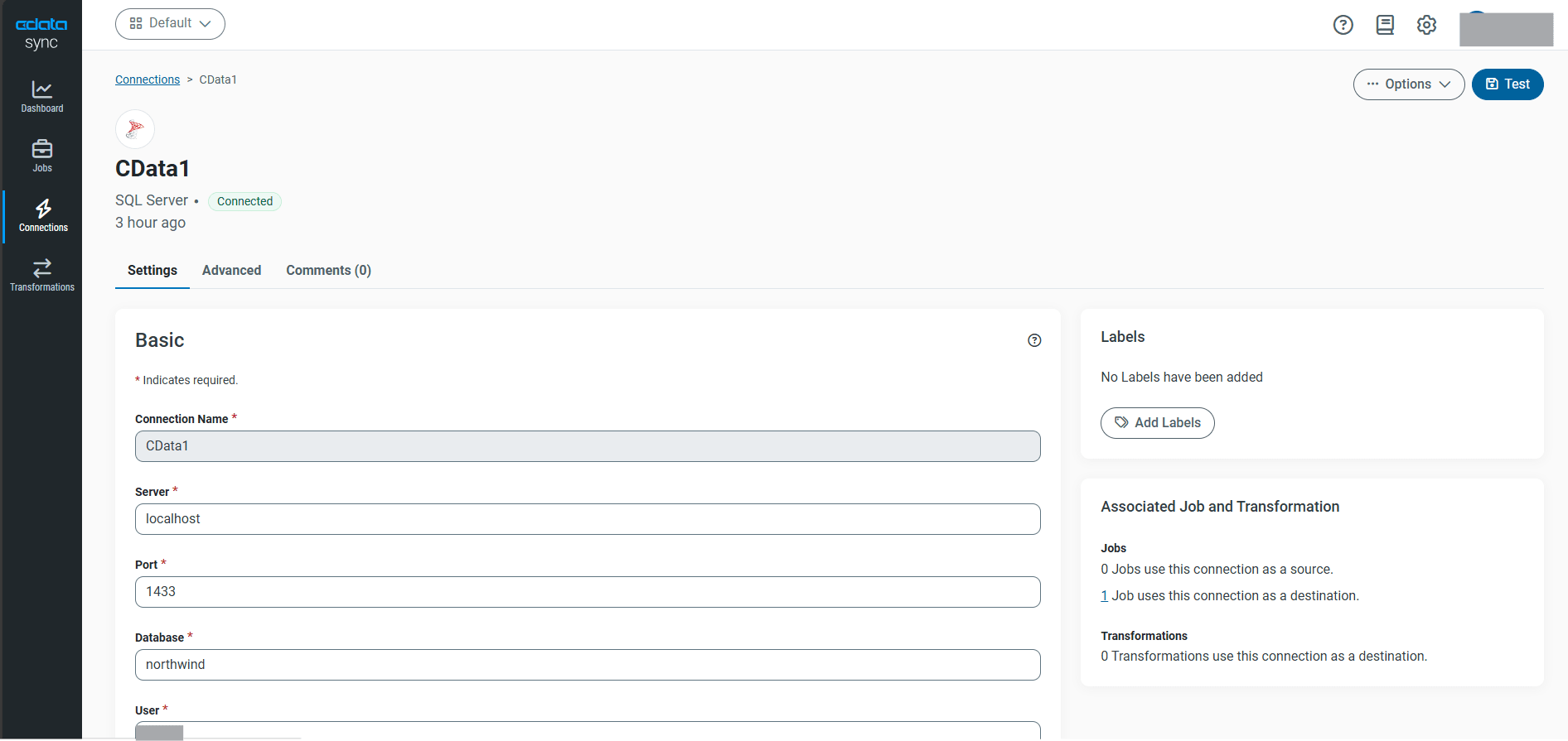 - Test Connection で接続を確認し、Save を選択します