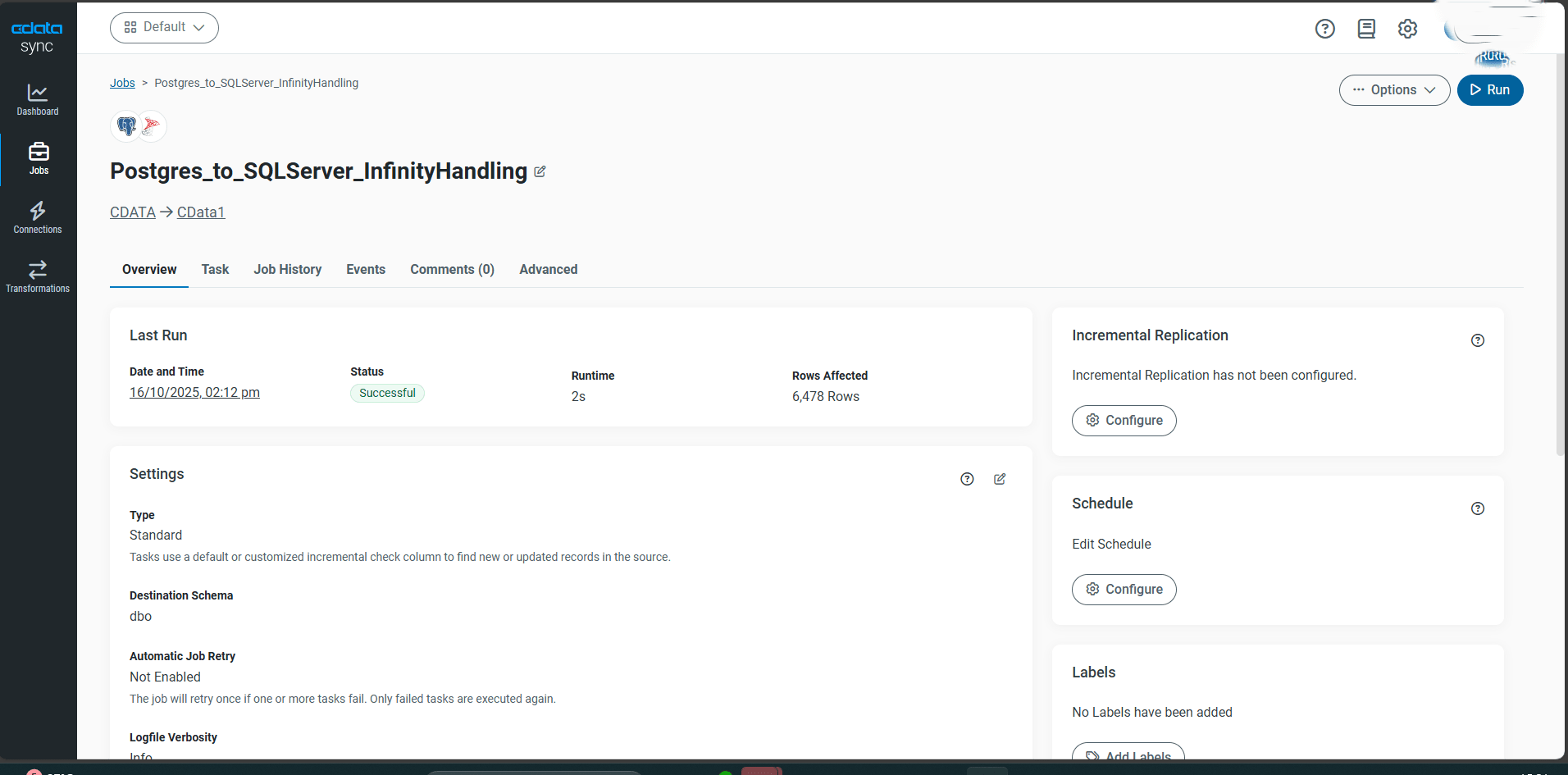 - ジョブ名を入力します(例: Postgres_to_SQLServer_InfinityHandling)