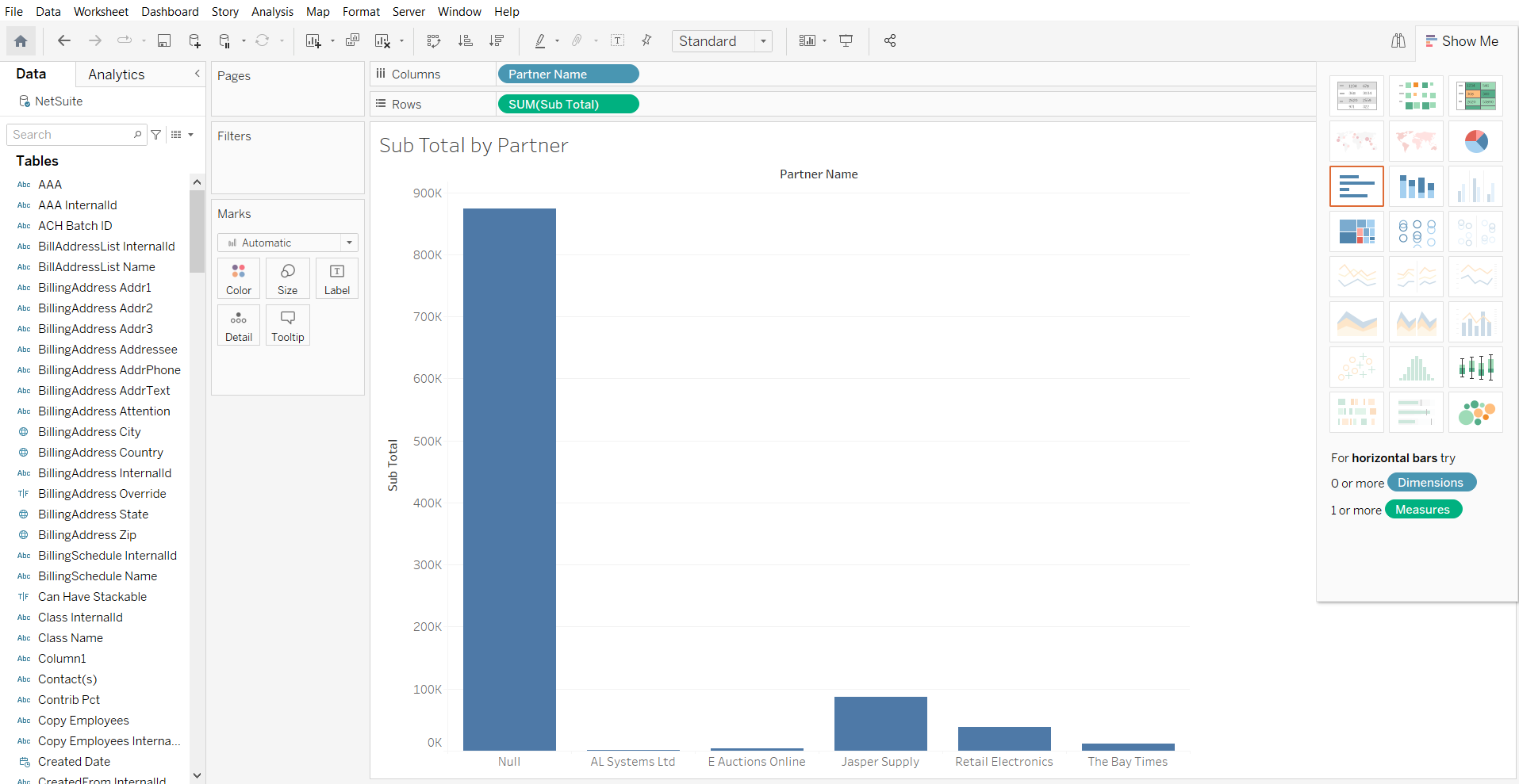 これで、CData Connector を使用して Tableau で NetSuite データのビジュアライゼーションを作成できました!