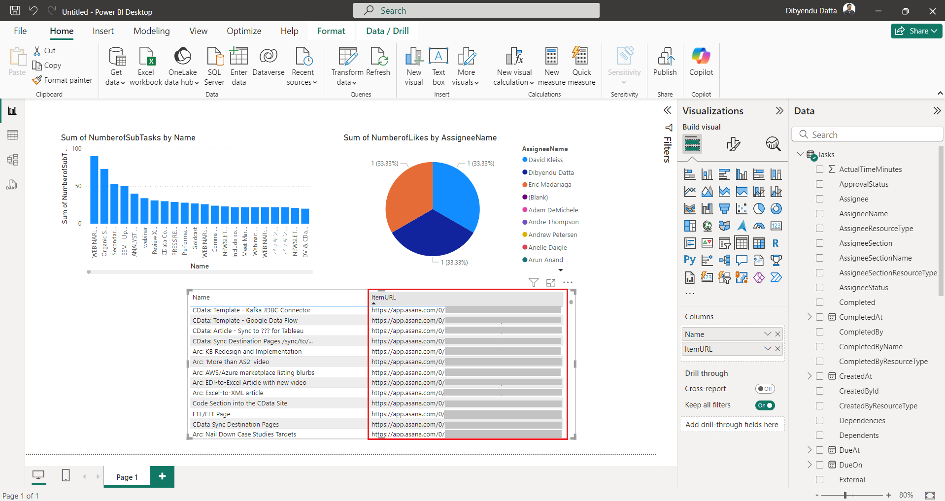 In this section, we will demonstrate how to create reports from Asana data in Power BI using the CData Asana Power BI Connector. By connecting directly to Asana, this integration provides actionable insights and enables seamless navigation between Power BI and your Asana workspace.