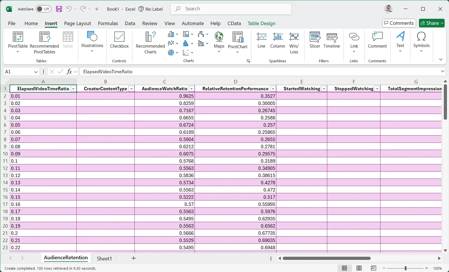 How to Analyze YouTube Audience Retention Data in Excel with CData