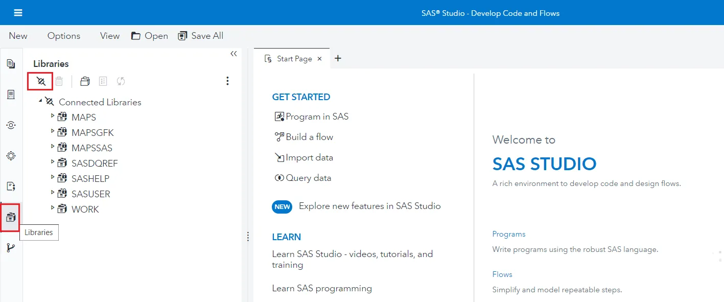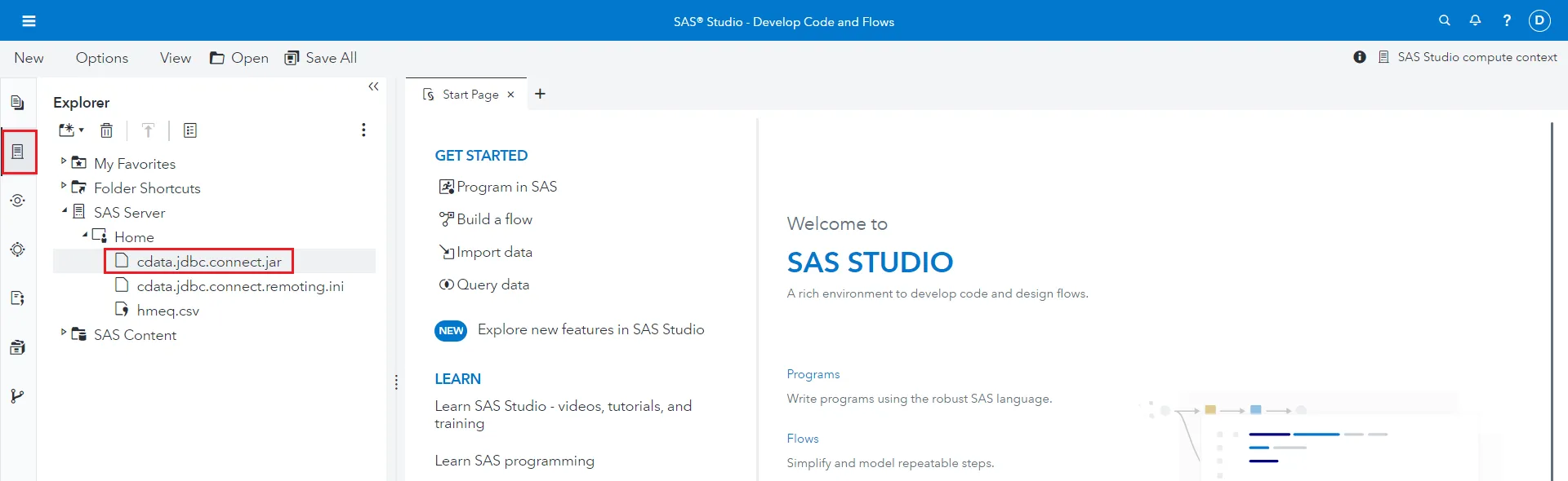 - Explorer タブに移動し、左パネルの SAS Server をクリックします。