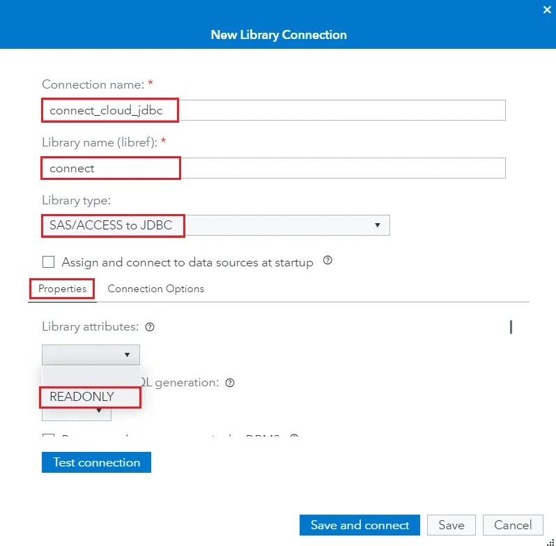 - Library type: 「SAS/ACCESS to JDBC」を選択
