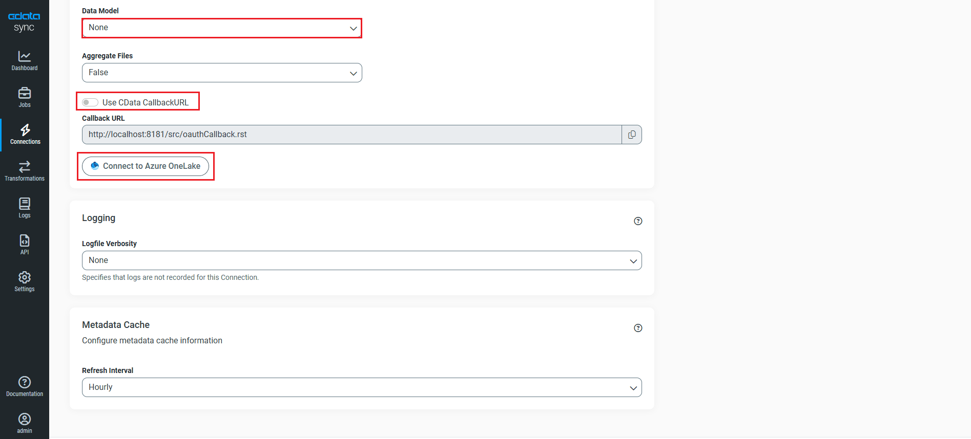 - CData Sync Cloud を使用している場合は、Use CData CallbackURLトグルを有効のままにしてください。