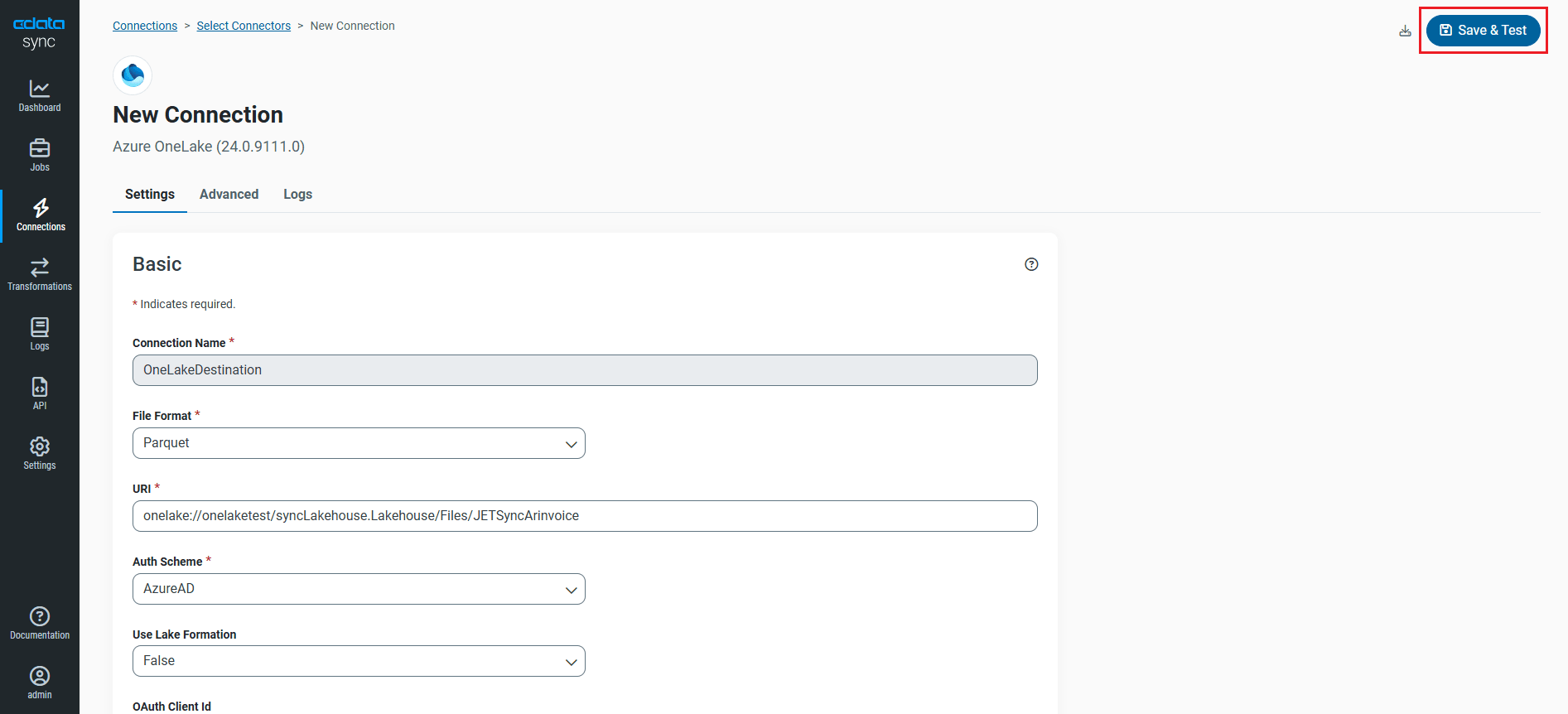 これで OneLake に接続され、データソースとしても同期先としても使用できるようになりました。