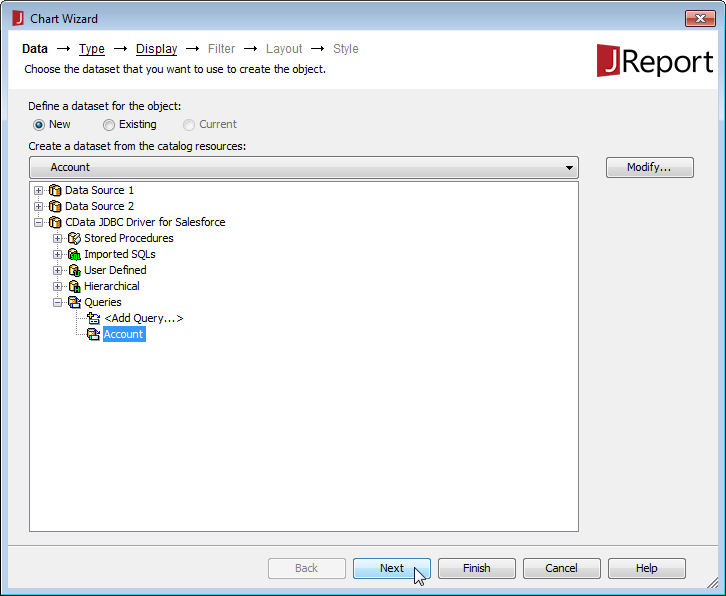 - 表示されるダイアログでデータソース名を入力し(例:CData JDBC Driver for Adobe Target)、JDBC を選択して OK をクリックします。
