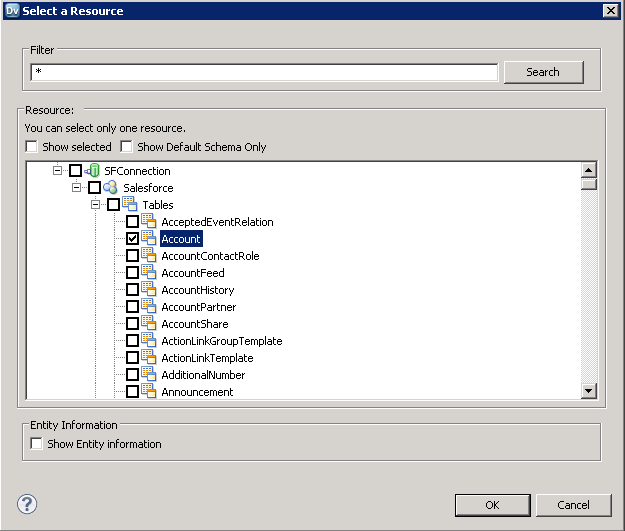 - 表示されるダイアログで、各リソースに対してデータオブジェクトを作成するオプションを選択します。