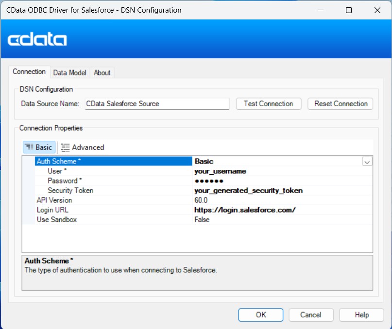 - ODBC ドライバーの設定:CData ODBC Driver for Asana で必要な接続プロパティを入力し、Asana のデータ への接続を設定します。
