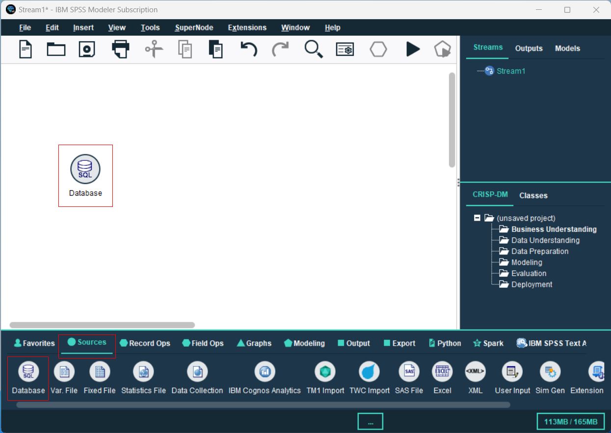 DSN の設定が完了したら、IBM SPSS Modeler で接続を行います: