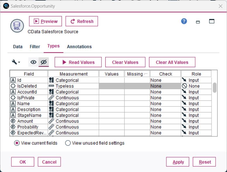 - データ型とロールの設定:Types セクションでフィールドをカテゴリ分けし、各データ型にロールを割り当てます。