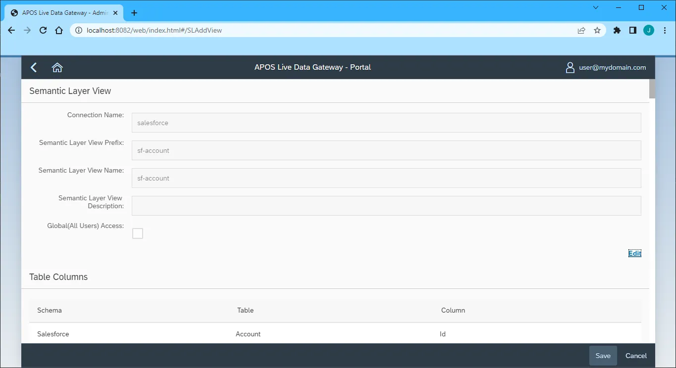 これで、Live Data Gateway Web UI でセマンティックレイヤービューを構築する準備が整いました。