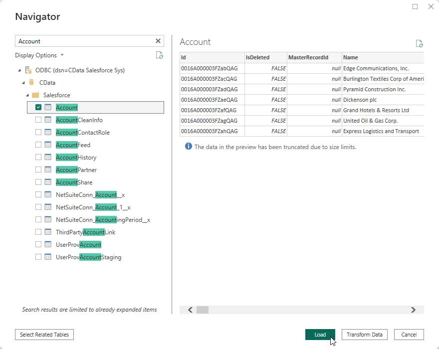 CData ODBC ドライバは、ドライバーに組み込まれた最適化されたデータ処理により、Power BI でリアルタイムAvro のデータを操作するための優れたパフォーマンスを実現します。Power BI から Avro に複雑な SQL クエリを発行すると、ドライバーはフィルタや集計などのサポートされている SQL 操作を Avro に直接プッシュし、組み込み SQL エンジンを利用してサポートされていない操作(主に SQL 関数や JOIN 操作)をクライアント側で処理します。組み込みの動的メタデータクエリ機能により、Power BI ネイティブのデータ型を使用してAvro のデータを可視化・分析できます。