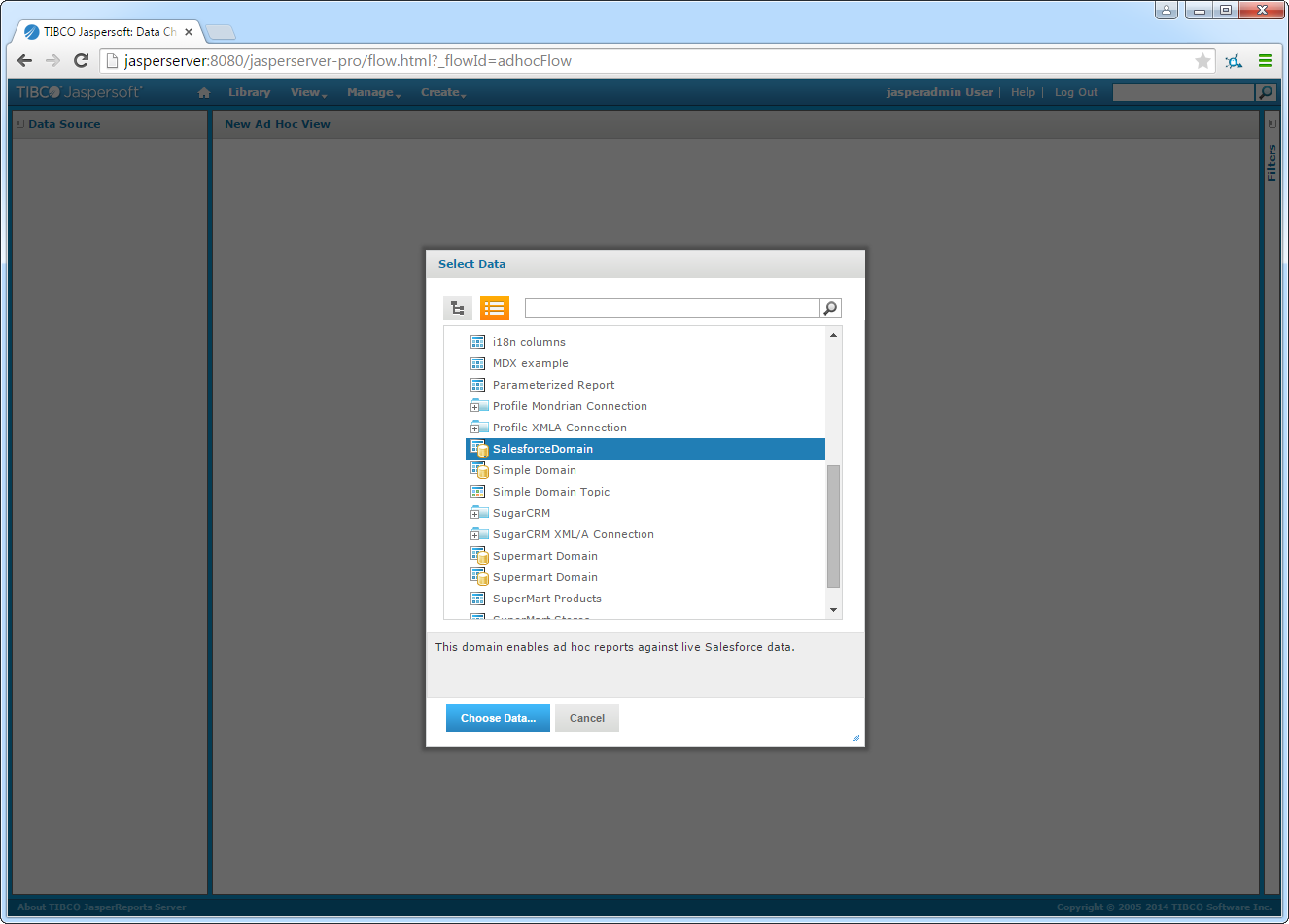 ドメインを作成したら、データに接続する準備が整います。以下の手順に従って、Ad Hoc Editor で Ad Hoc ビューを作成します。