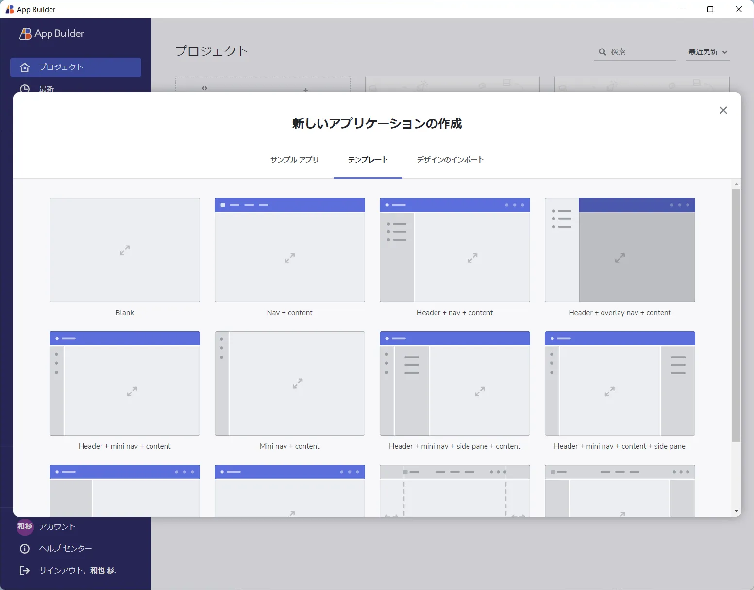 - App Builder を立ち上げて「+新しいアプリ」をクリックします。