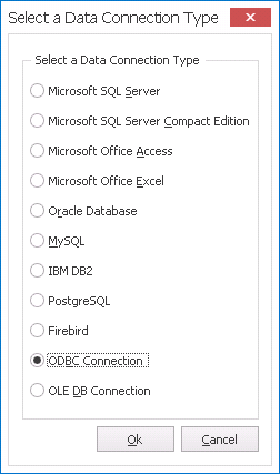 - Data Connection Type として ODBC Connection を選択します。