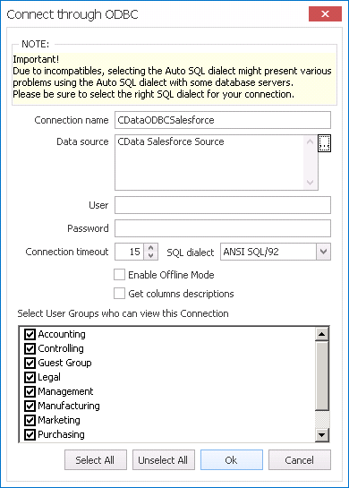 - 接続名を入力し、適切なユーザーグループを選択します。