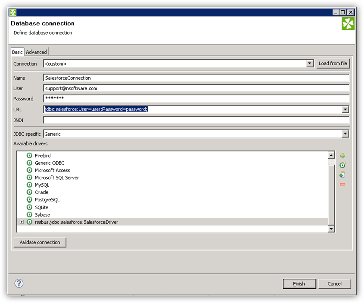- Bing Ads のデータ への接続を作成します。新規のCloverDX グラフで、Outline ペインの「Connections」ノードを右クリックし、「Connections」->「Create Connection」をクリックします。Database Connection ウィザードが表示されます。
