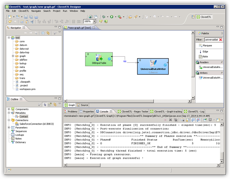 - DBInputTable の出力ポートをUniversalDataWriter に接続します。