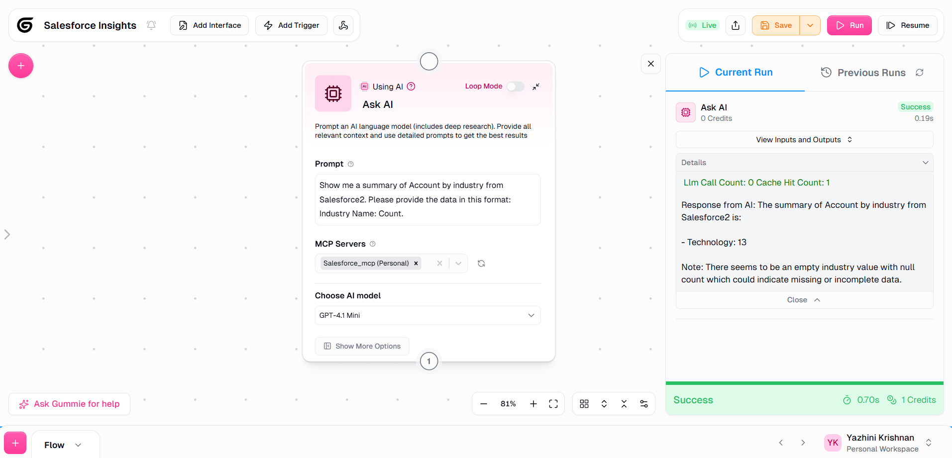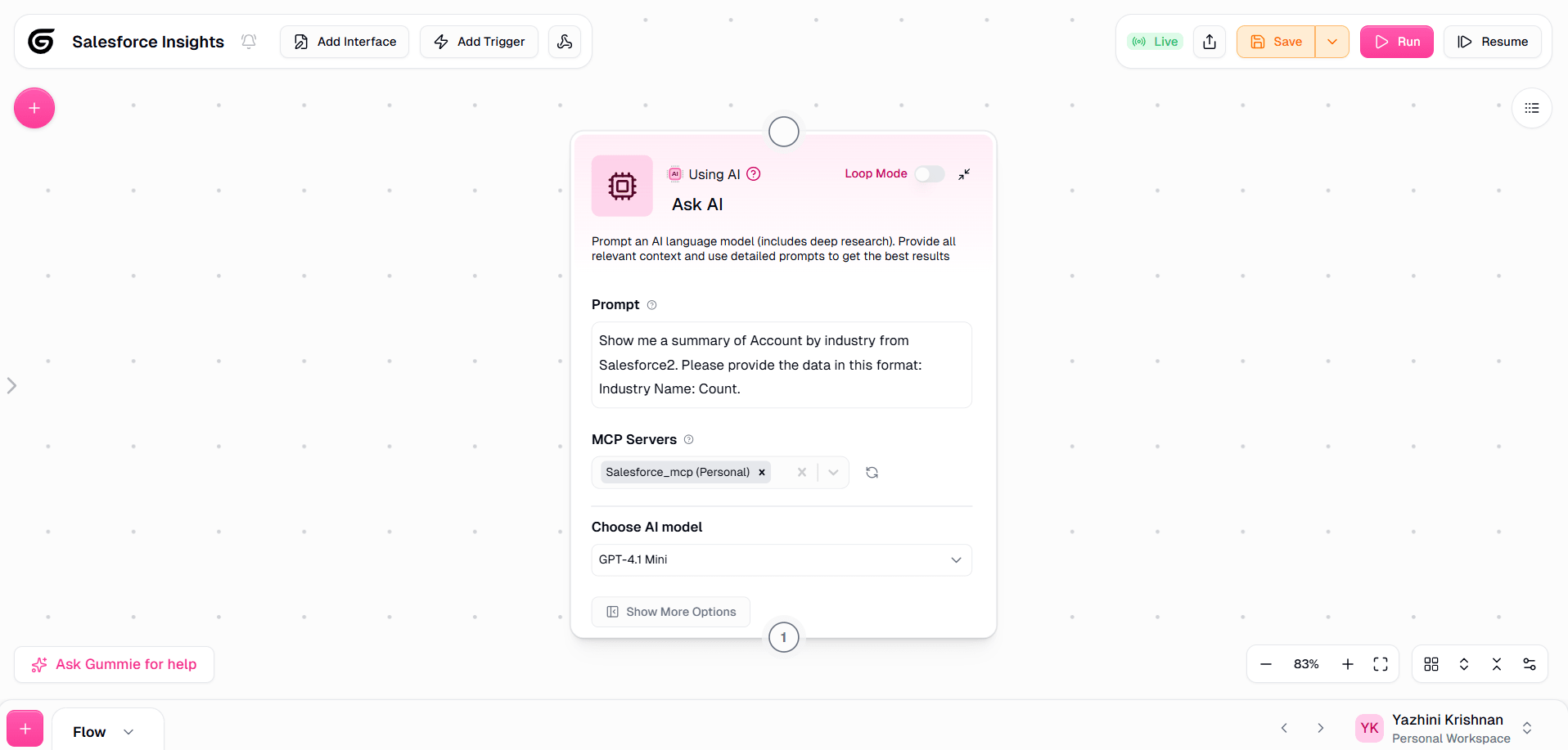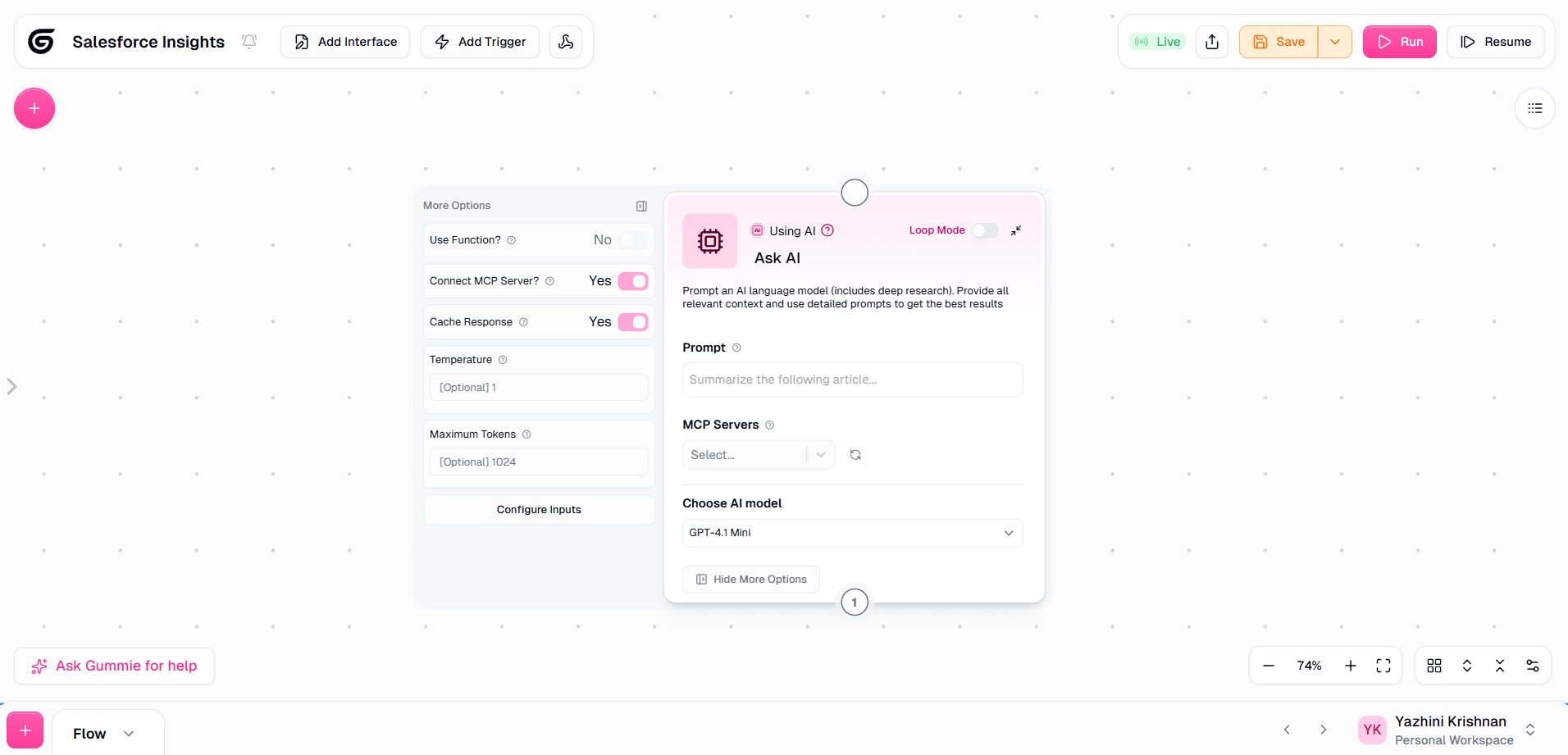 ステップ3: ワークフローを構築してGumloop でCouchbase のリアルタイムデータを探索する