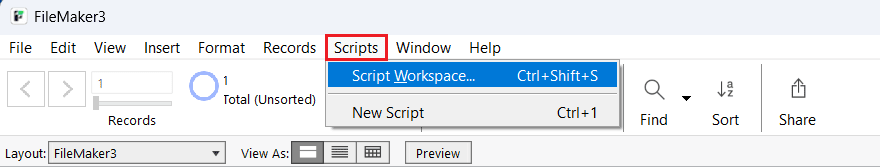- Scripts > Script Workspace に移動します。