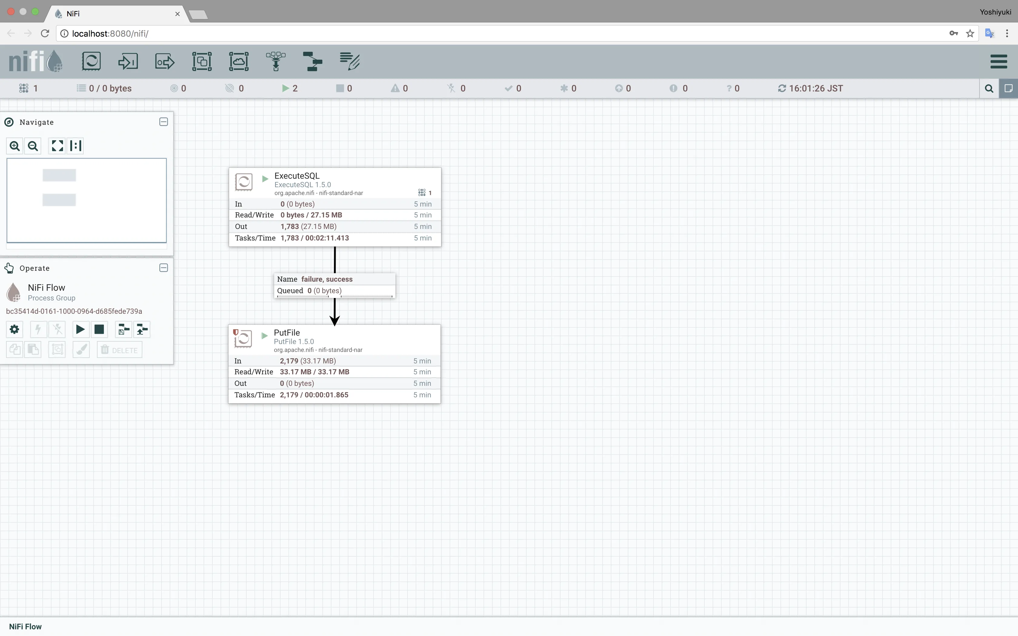 ExecuteSQLとPutFileプロセッサの実行