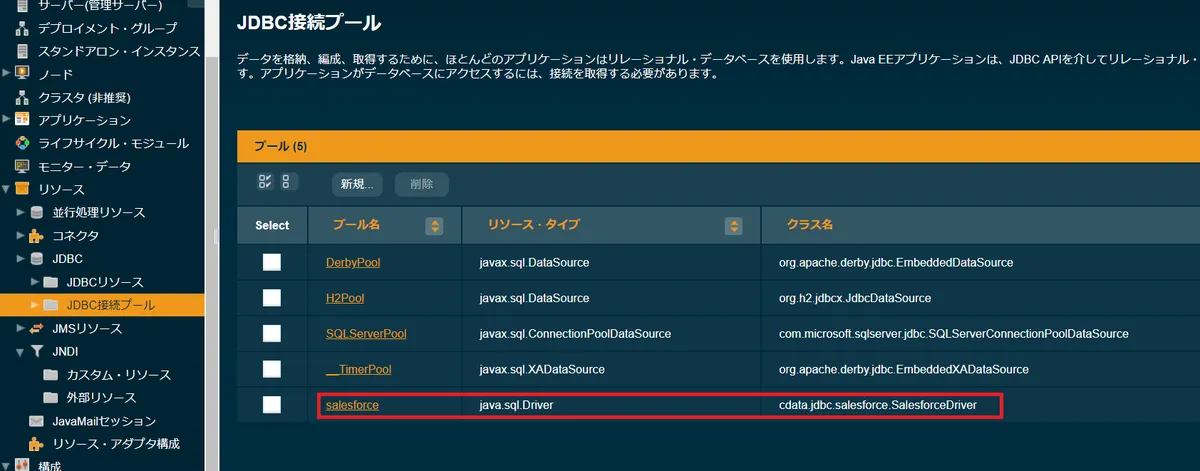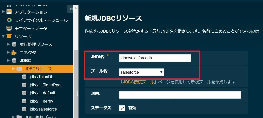 - JDBC 接続プールで作成したときの名称