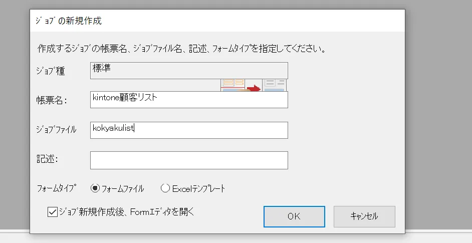 - 帳票名、ジョブファイル名に任意の名前を設定します。