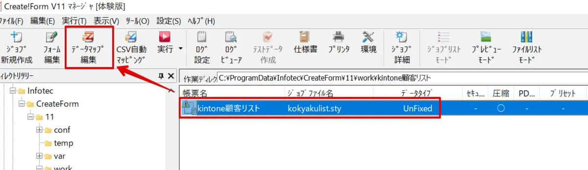 - 対象の帳票を選択した状態でデータ編集マップをクリックします。