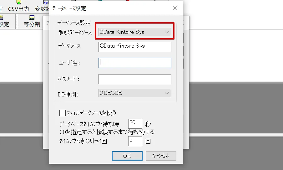 - 先ほど作成したデータソースを選択し、OK ボタンをクリックします。