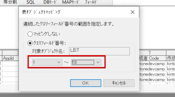 - 画面一番下のエリアで右クリックし、マッピング範囲指定を選択します。