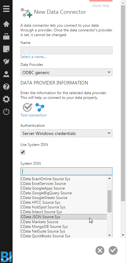 - Dundas BI の Data Connector を設定します: