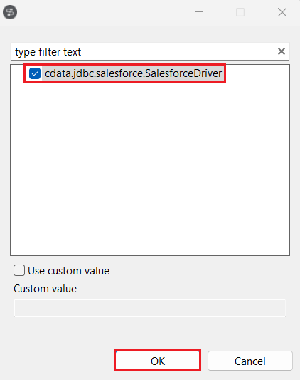 - Driver Class として cdata.jdbc.github(前のステップで指定したインストールディレクトリから取得した JAR ファイル)を選択します。