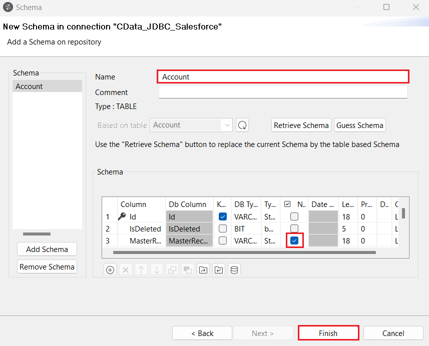 - GitHub スキーマから選択したすべてのテーブルが、JDBC 接続の Table Schemas セクションに表示されます。