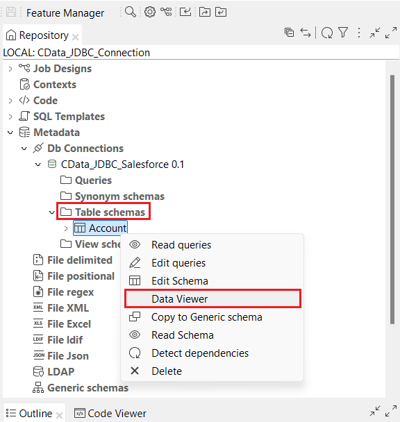 - 選択したテーブルのいずれかを右クリックし、Data Viewer をクリックしてデータソースからのデータをプレビューします。