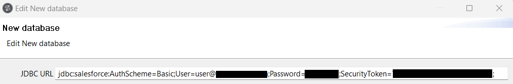 CData JDBC Driver for GitHub からコピーした JDBC URL を Edit new database に入力します。