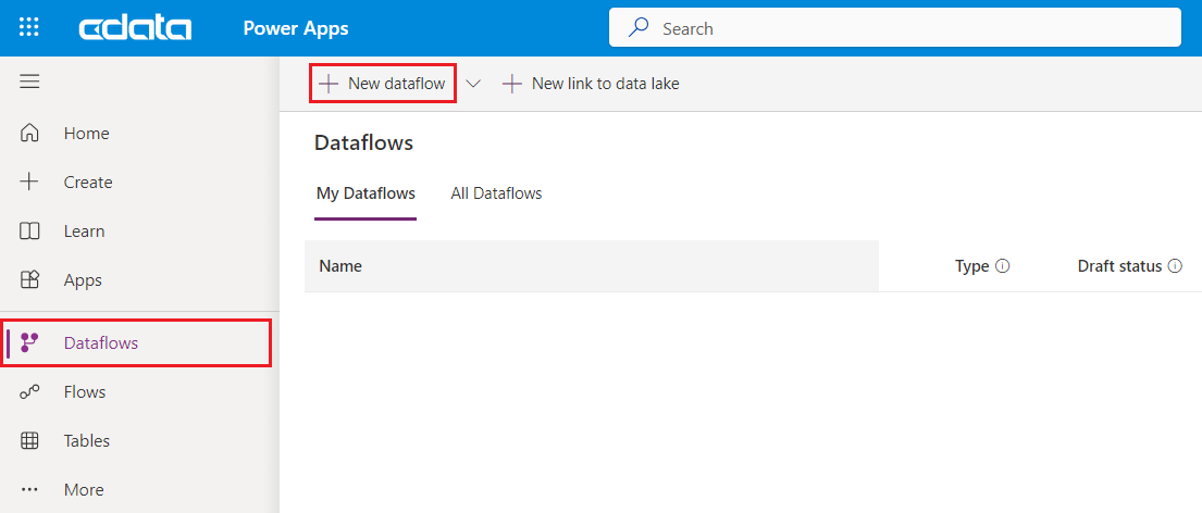 それでは Power Apps の画面に移動して、データフローを作成してみましょう。