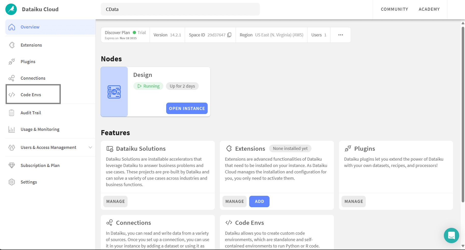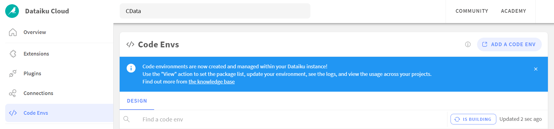 - Dataiku Cloud で Code Envs を開く