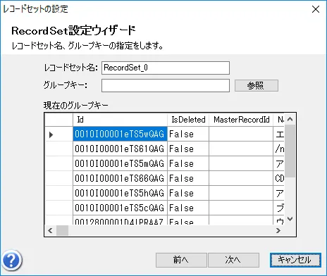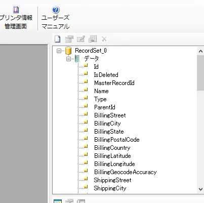 - 作成完了後、右ナビゲーションに作成されたレコードセットのカラム一覧が表示されます。
