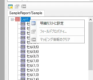 - それでは実際に各カラムをマッピングしていきたいと思います。なお、フォームで事前に作成していたリストはそのままだと各セルが独立してしまっているため、一覧表示を行う仕様になっていません。事前に対象のリストを選択し「明細リストに設定」を実行しておきましょう。