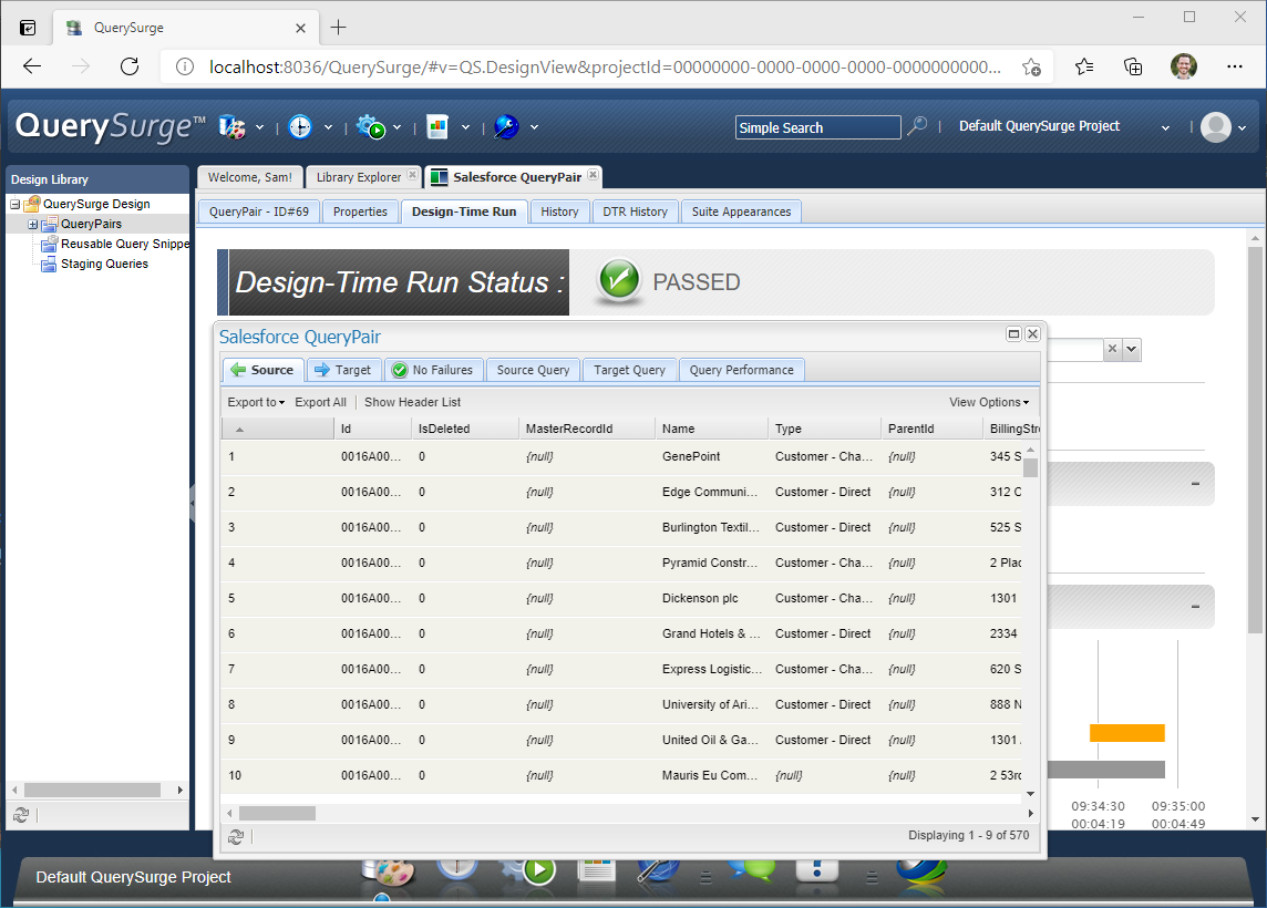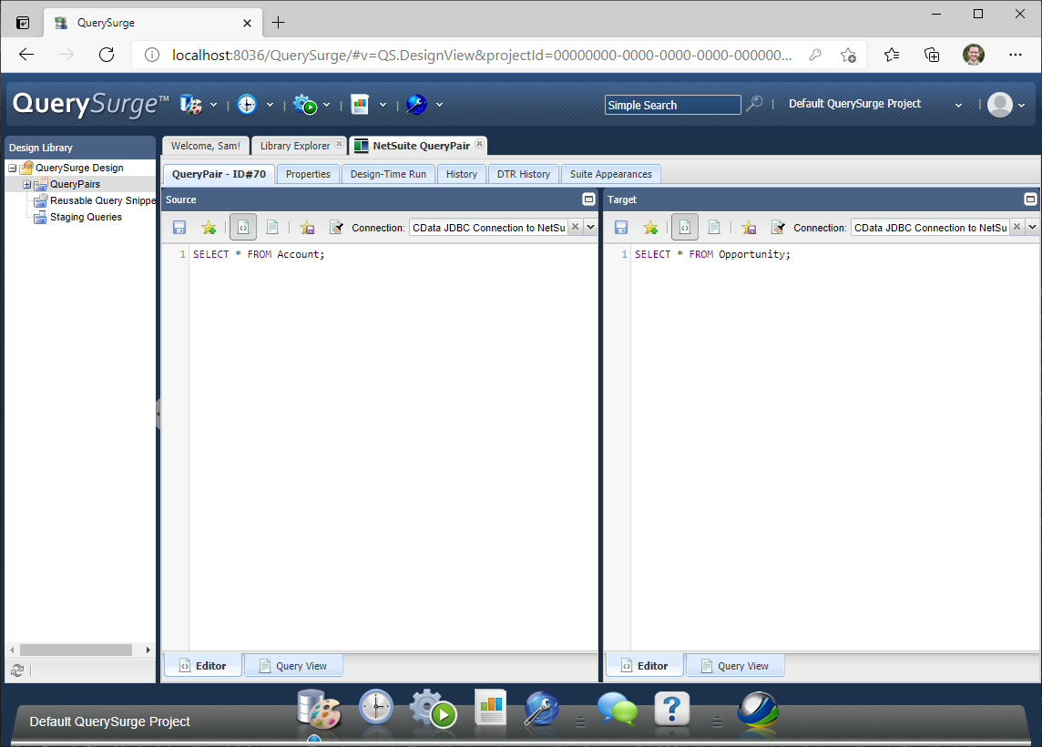 - QuerySurge Design の下の QueryPairs をクリックします