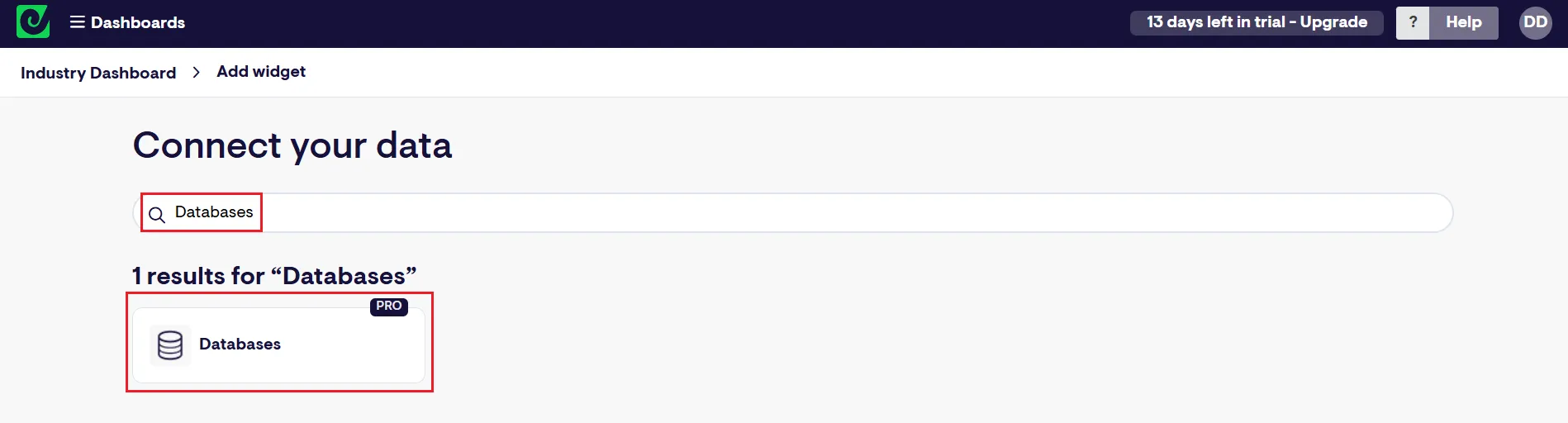 - Connect your data 検索バーで「Databases」を検索