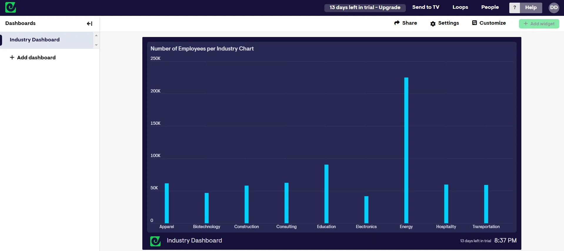 - 選択したチャートが Geckoboard に表示されます