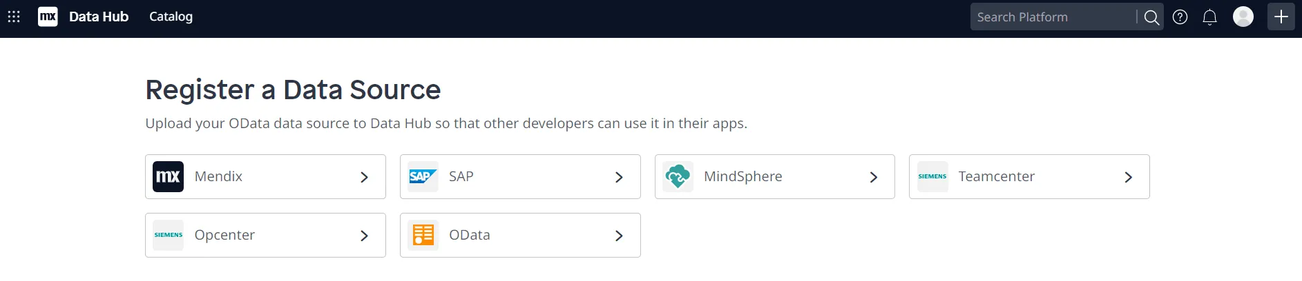 2. 「Register a Data Source」セクションで「OData」を選択します。