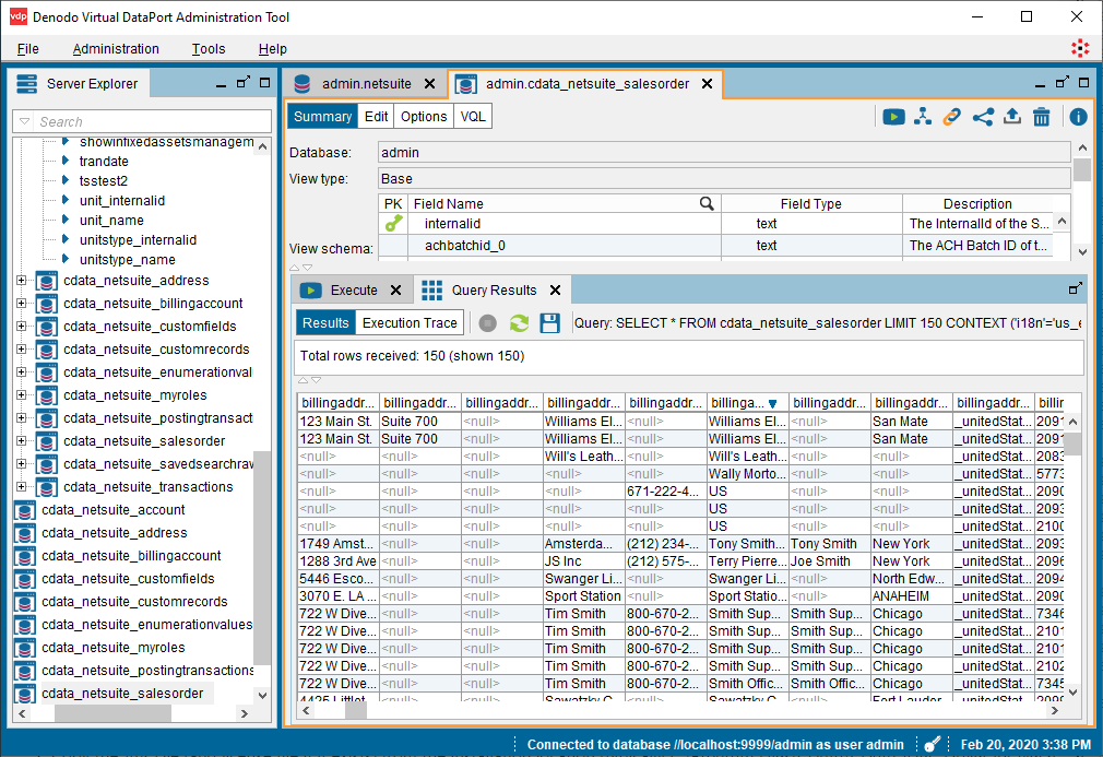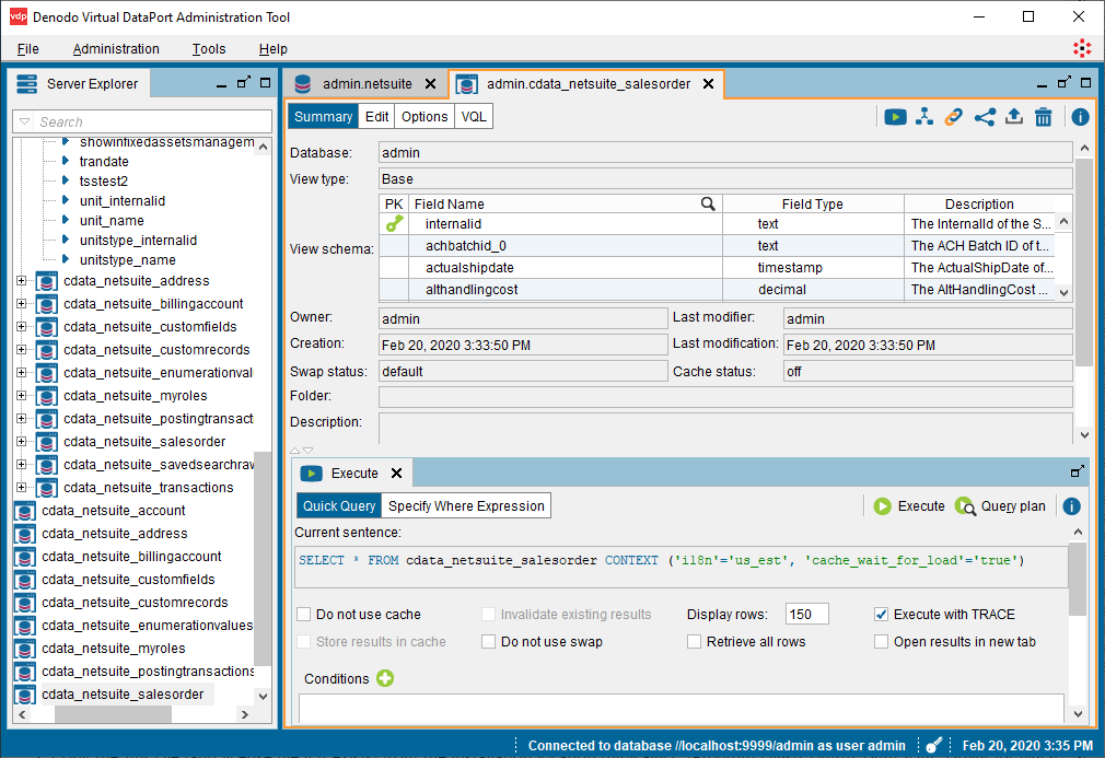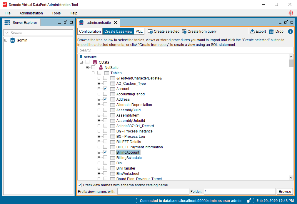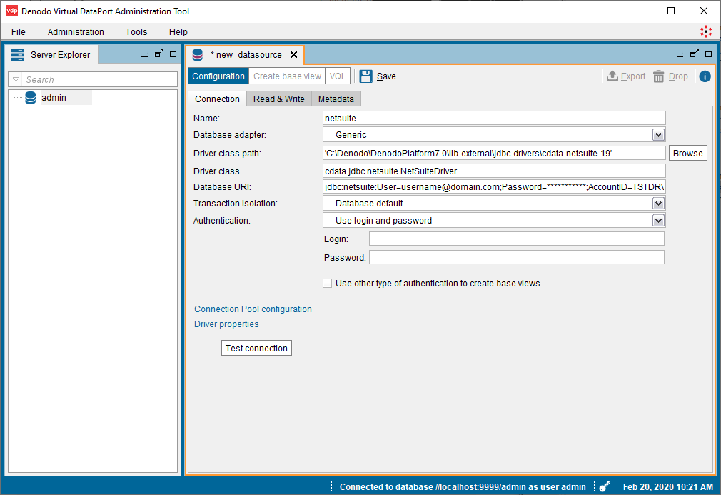 - Denodo Virtual DataPort Administrator ツールを開き、Server Explorer タブに移動します。
