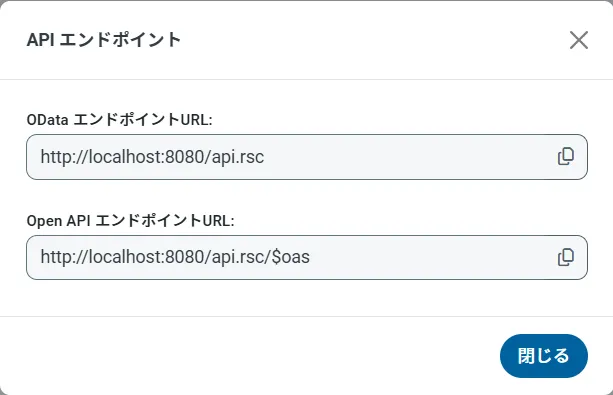 以上でOracle Sales への接続を設定してユーザーを作成し、API Server でOracle Sales データのAPI を追加しました。これで、OData 形式のOracle Sales データをREST API で利用できます。API Server の「API」ページから、API のエンドポイントを表示およびコピーできます。