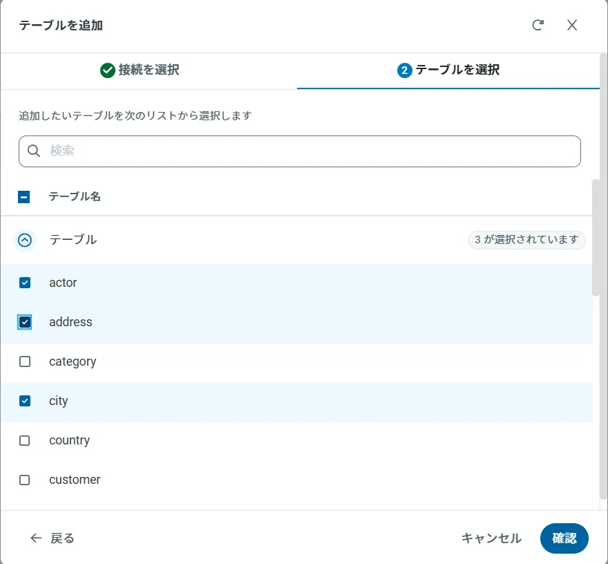 接続を選択した状態で、各テーブルを選択して確認をクリックすることでエンドポイントを作成します。