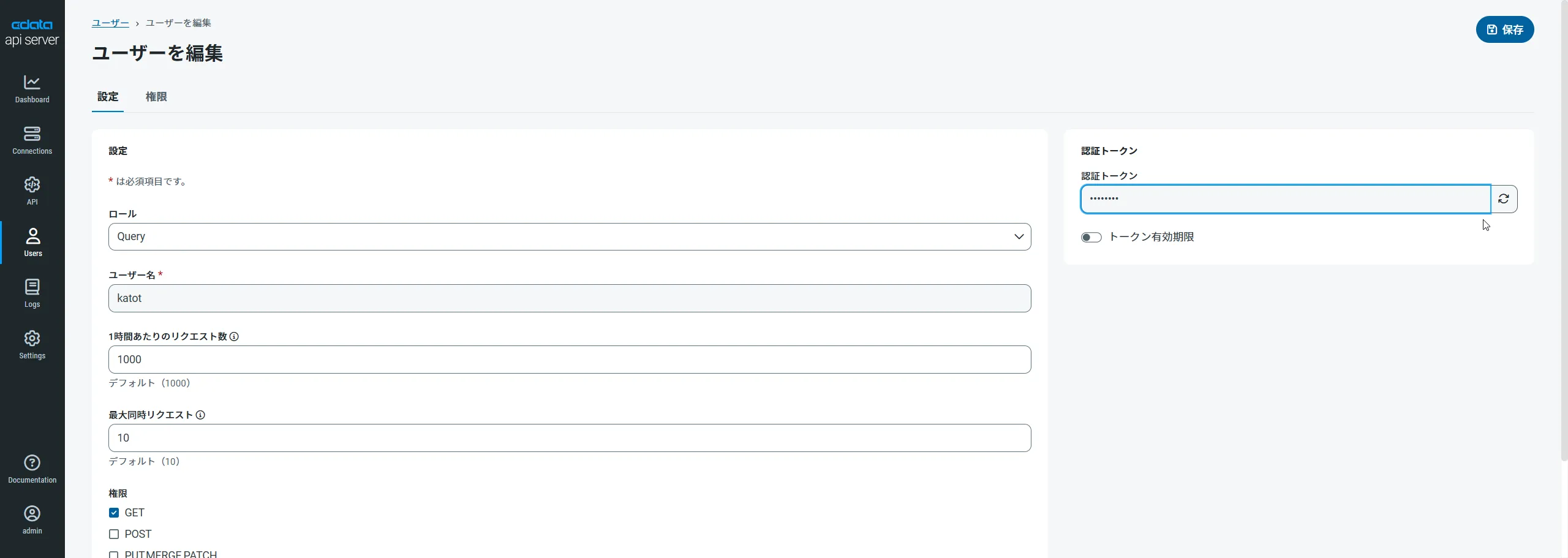その後、ユーザーの認証トークンが生成されます。各ユーザーの認証トークンとその他の情報は「Users」ページで確認できます。