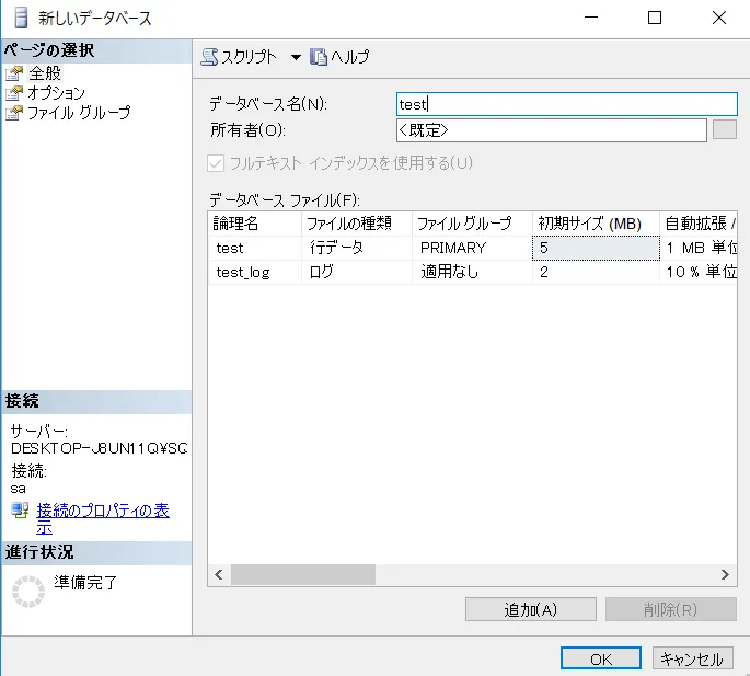 この例では、SQL Server を使います。難しい手順は不要で、SQL Server に任意の名前の新しい同期DB を作成しておくだけです。